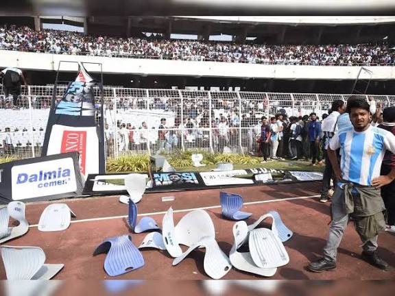 Yes, one should raise valied questions about why so many water bottles, soft drinks bottles were allowed inside the stadium, when law clearly dissallows that? Yes questions should be raised about why so many people were allowed to surround Messi all the time? Questions should be raised about why a high and revolving platform was not put up to facilitate Messi fans have a better look at their icon, sitting at the gallery? Questions should be raised about why Messi was not allowed to take a round (like the victory lap) of the ground along the boundaries? If you are charging so much, why had not such simple things occured to the organisers? In any such games of sporting event, gallery show is not anything uncommon. Why no such activity was pre-planned? In all such big events, especially involving an international icon, a second-to-second itinerary is prepared, rehearsed, approved more than once before the final event. A mock drilling of the sort also takes place. Did anything of the sort take place? Is the Chief Minister of a state supposed to monitor and ensure all these for a private event?