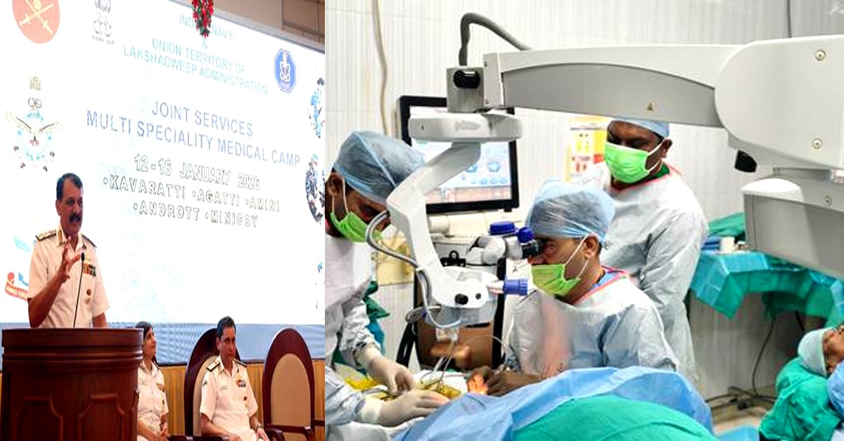As part of the camp, 29 Medical Officers, two Nursing Officers, and 42 Paramedical personnel from the Armed Forces from establishments across the country have been deployed. Lakshadweep has an established government healthcare system comprising district hospitals, community health centres, and primary health facilities. To complement these services, medical equipment, stores, and medicines have been augmented, enabling access to specialist and super-specialist care at respective healthcare facilities. Dedicated surgical teams have also been deployed at Agatti and Minicoy to manage operative and procedural requirements. Nearly 50 sight-restoring surgeries within just two days is a major highlight of the camp, delivering world-class ophthalmic care to the island residents by the specialists from Army Hospital (Research & Referral), with many more to follow in the next few days.
