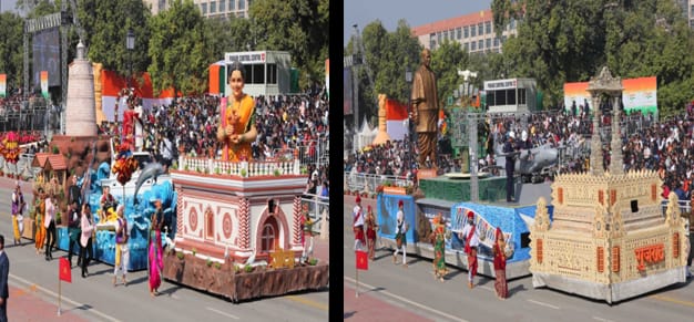 At Kartavya Path, the arrival of the President of India formally marks the commencement of the proceedings. The unfurling of the National Flag, accompanied by the National Anthem and a 21-gun salute, signals the beginning of the parade. Marching contingents of the Army, Navy and Air Force, along with other uniformed services, pass in ceremonial formation, reflecting discipline and coordination. Mechanised columns and selected defence presentations further add to the spectacle. A distinctive feature of the parade is the presentation of tableaux by States/ Union Territories and the Ministries, which highlight regional culture and themes of national importance. Cultural performances integrated into the procession also add visual depth without interrupting its formal rhythm. One of the main functions of the parade is to honour the martyrs who have sacrificed their lives for the country and to bestow bravery awards upon military personnel and citizens. Signature segments such as the motorcycle display and the Indian Air Force fly past bring the parade to its grand conclusion.